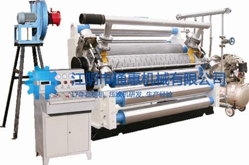 吸附式單面機(jī)采用高溫潤滑脂潤滑,方便可靠。 各導(dǎo)紙輥、予熱輥熱處理后,表面均經(jīng)精磨并鍍硬鉻處理。預(yù)熱輥、壓力輥、瓦楞輥均符合二類壓力容器國家標(biāo)準(zhǔn),并經(jīng)專業(yè)機(jī)構(gòu)驗(yàn)證。